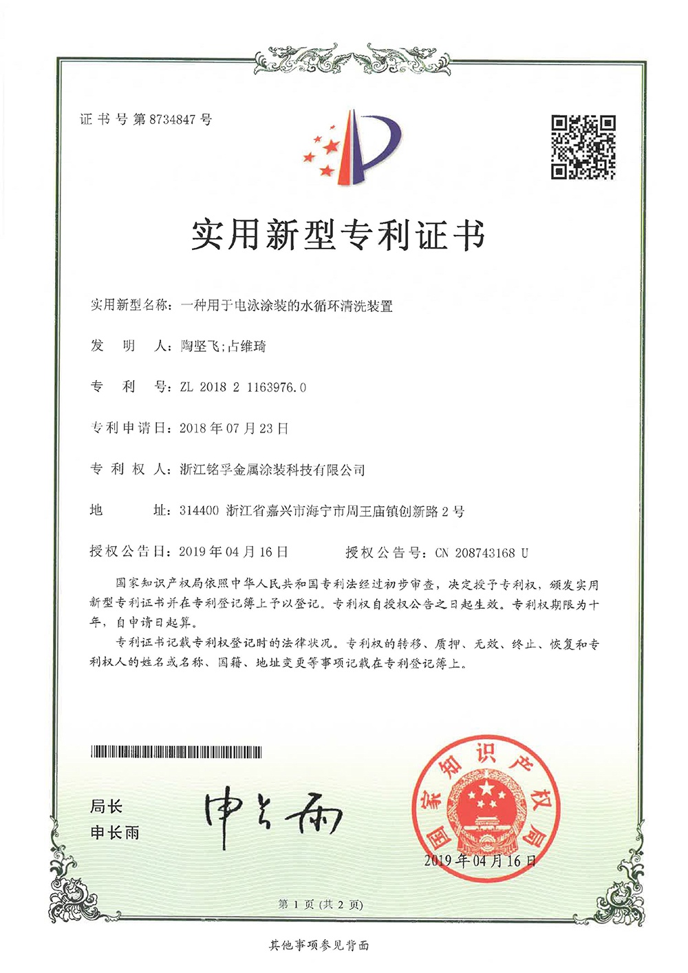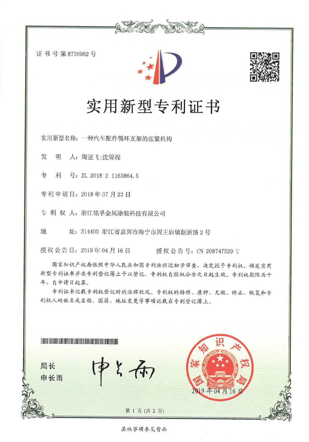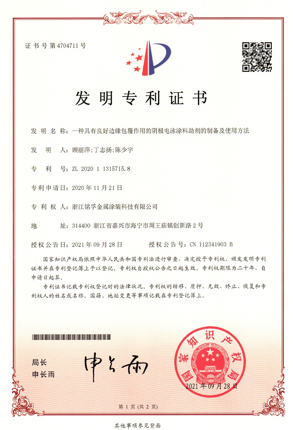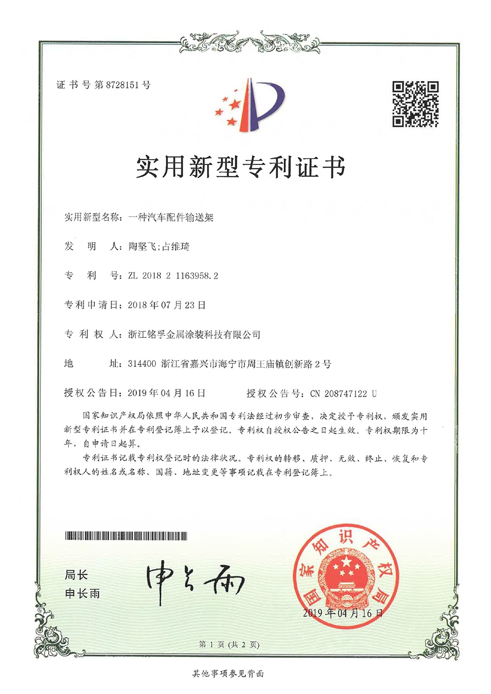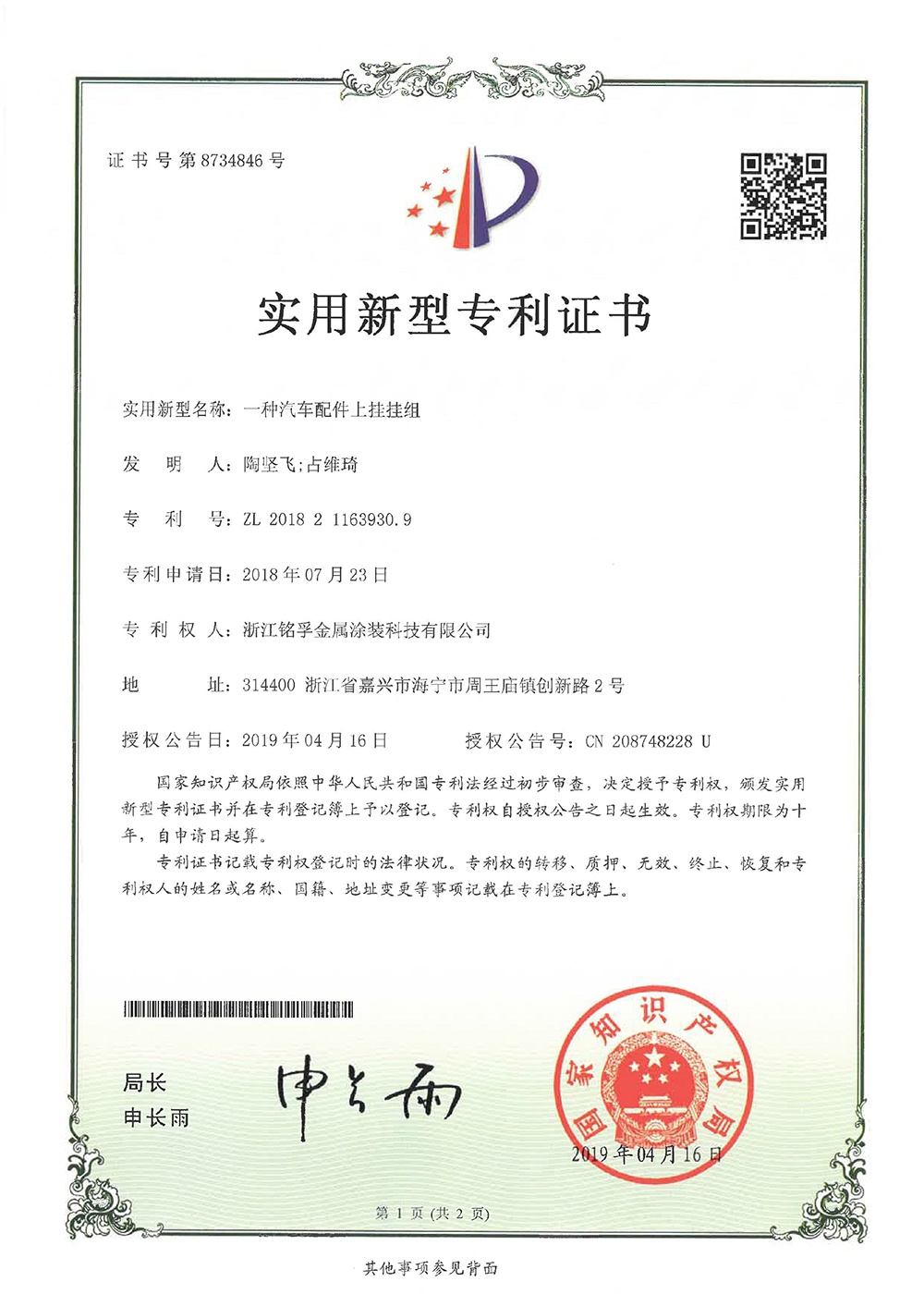 專利證書
