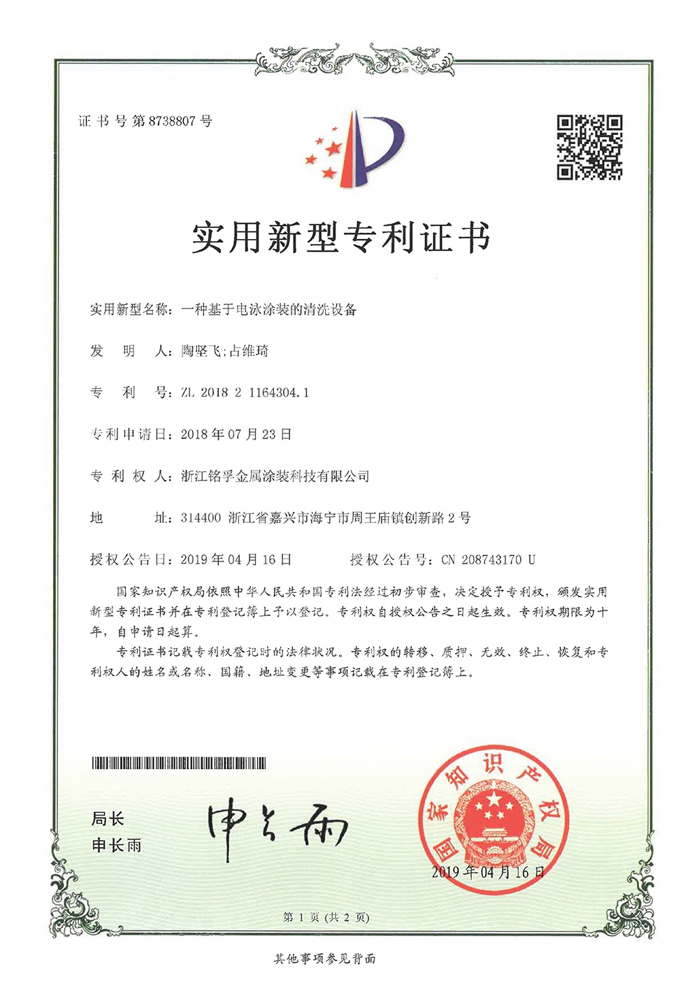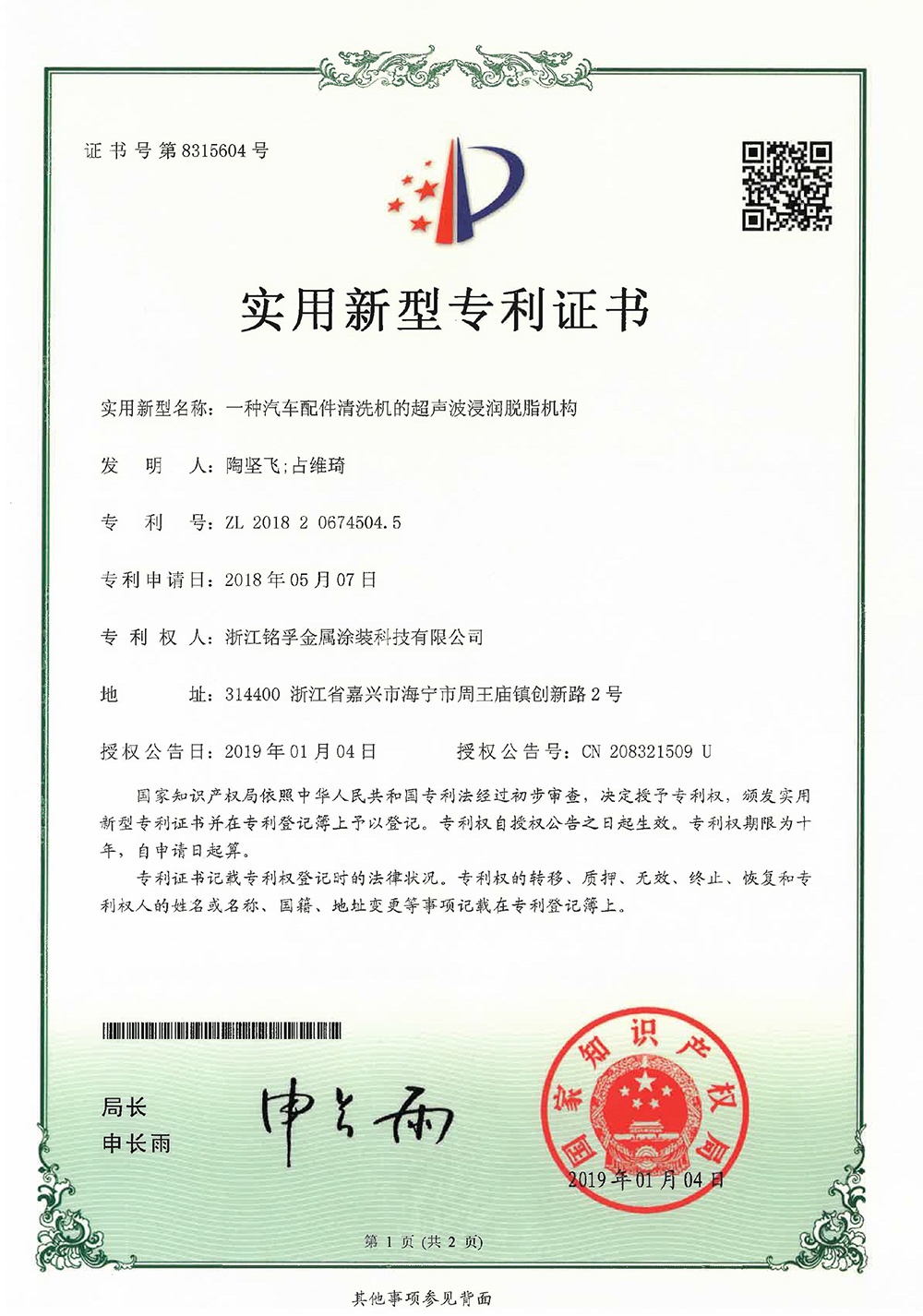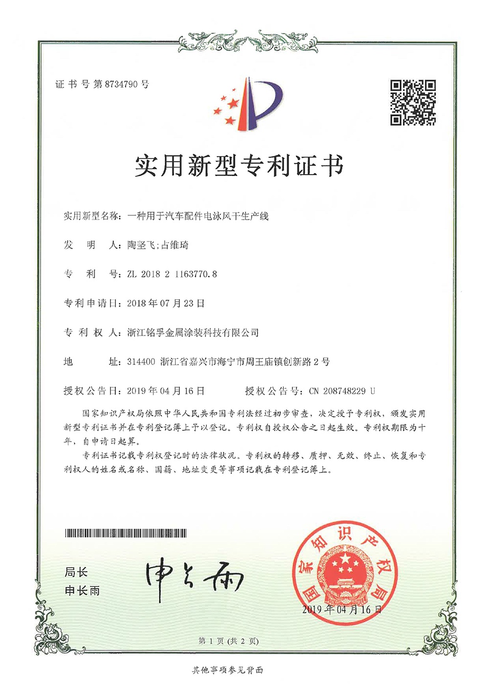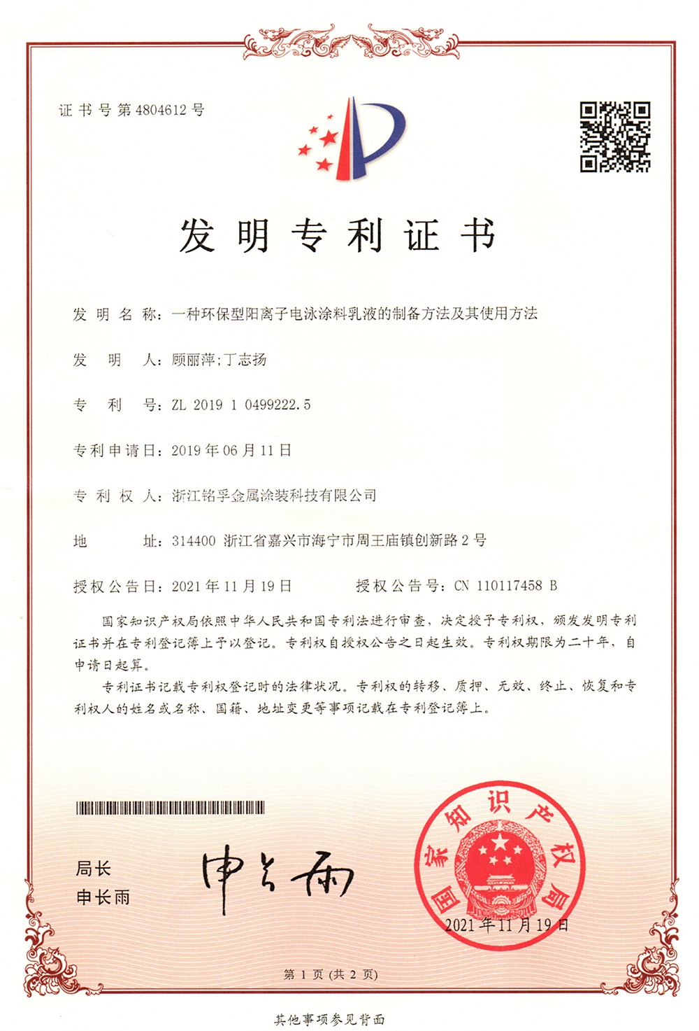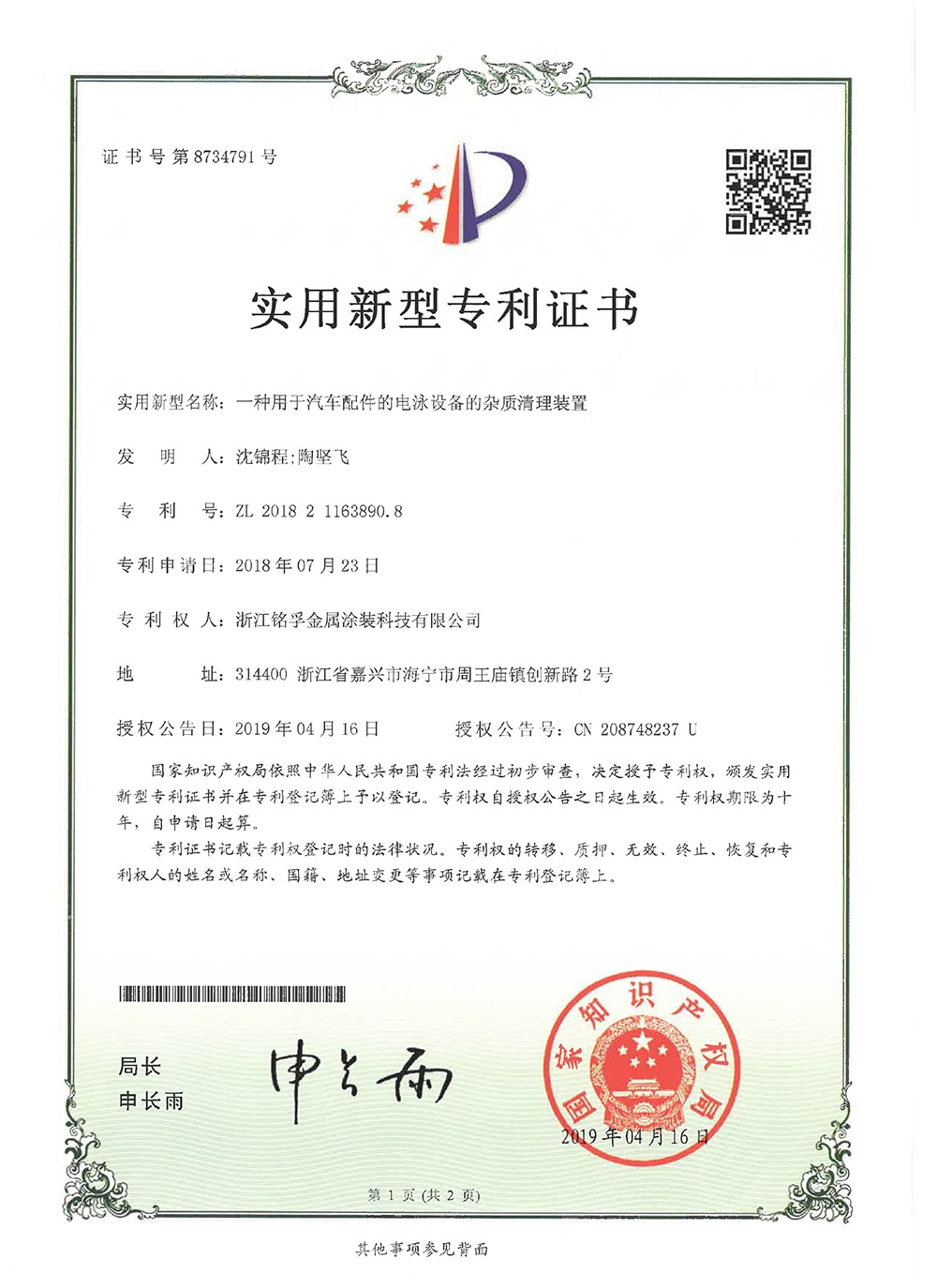 專利證書